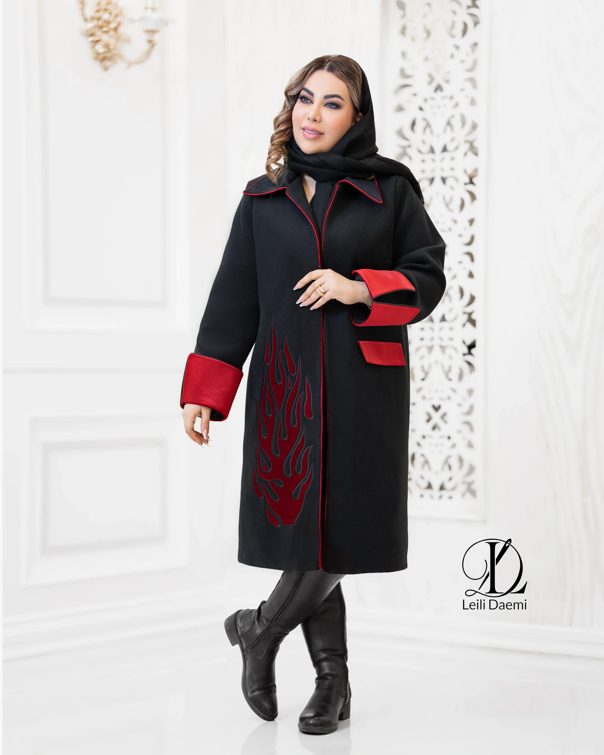 پالتو فوتر طرح آتش مشکی و قرمز
