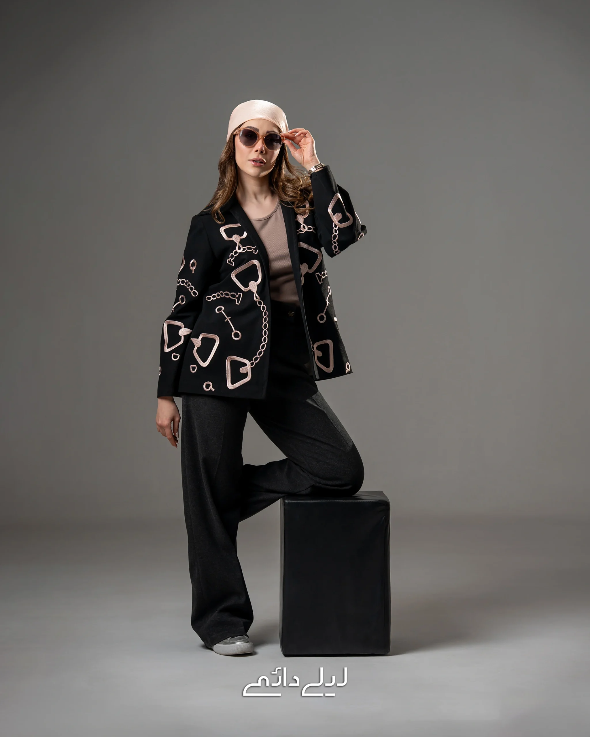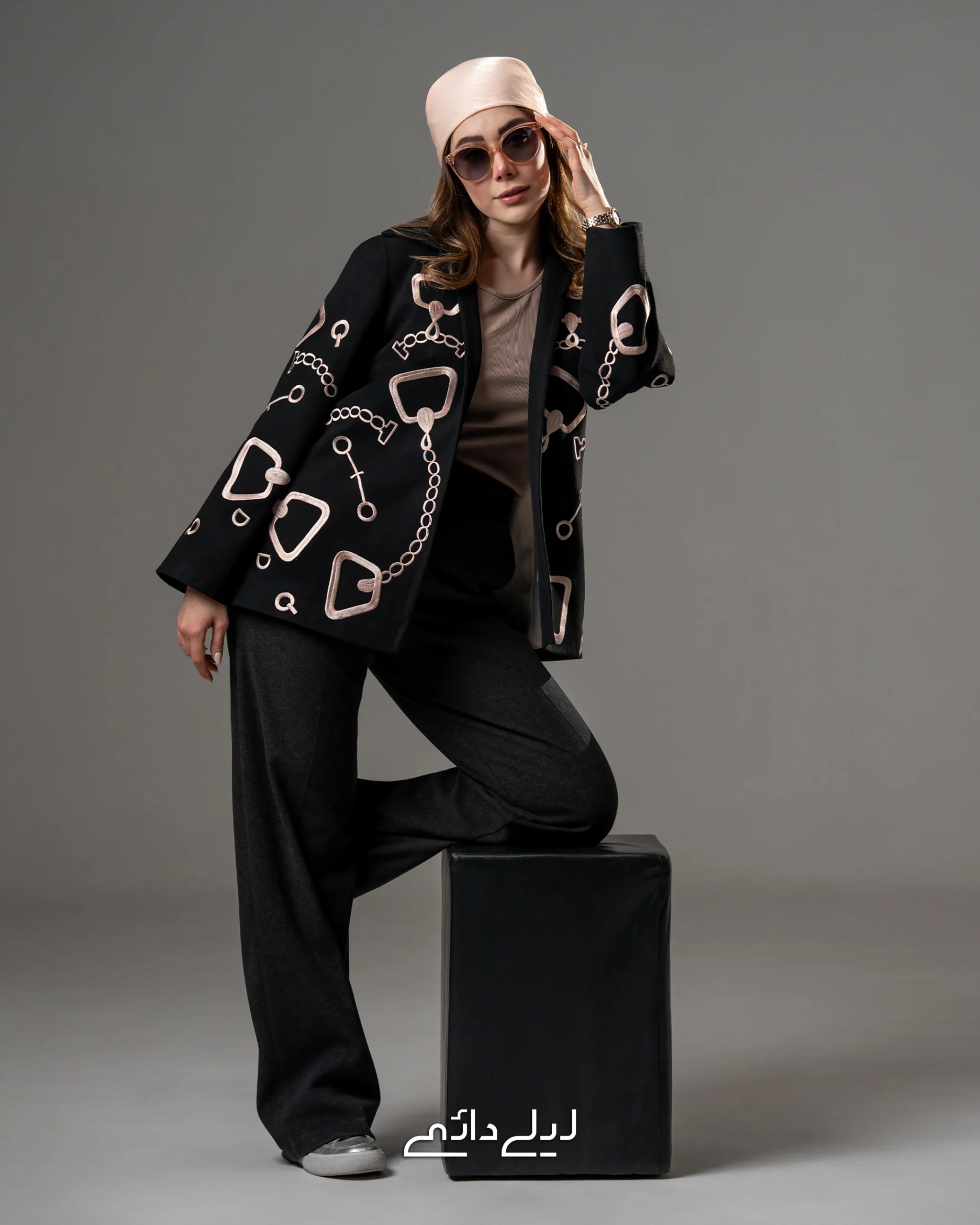 پالتو گلدوزی زنجیری کوتاه مشکی و کرم , یک پالتوی شیک و چشمگیر است که با ترکیب رنگی کلاسیک مشکی و کرم، ظاهر بسیار جذاب و هماهنگی ایجاد میکند. گلدوزیهای طرح زنجیری روی پارچه جلوهای لوکس و متفاوت میسازند و قد کوتاه پالتو نیز آن را برای استایلهای مدرن، روزمره شیک و حتی نیمهمجلسـی مناسب میکند. این مدل گزینهای عالی برای کسانی است که به دنبال استایلی خاص و در عین حال کاربردی در فصلهای سرد هستند.