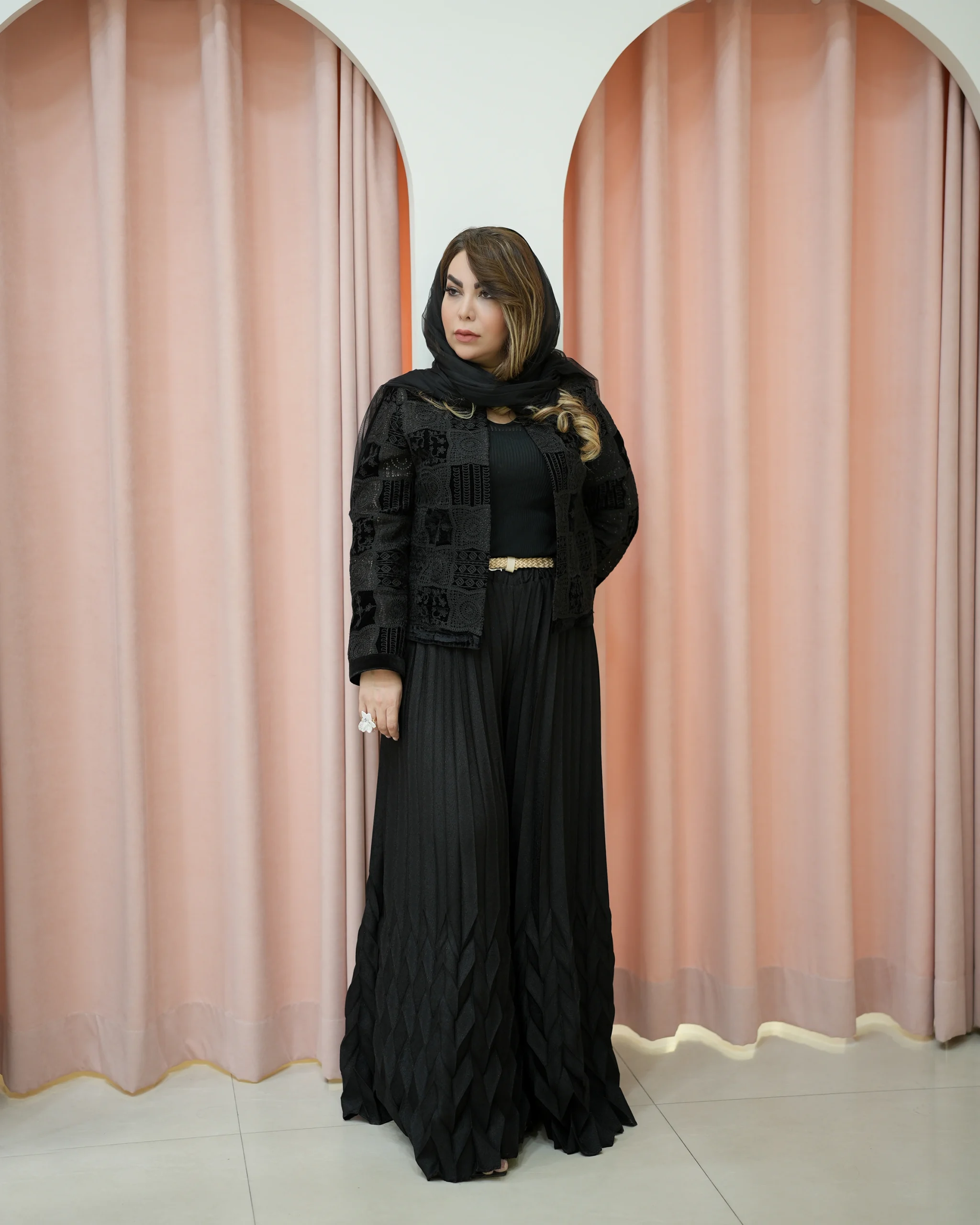 کت قلاب بافی مشکی مخمل , یک انتخاب بسیار خاص و چشمگیر برای استایل های مجلسی و شیک است. ترکیب ظرافت قلاب بافی با پارچه مخمل جلوه ای لوکس به این کت می بخشد. رنگ مشکی آن به راحتی با هر استایلی ست می شود.
