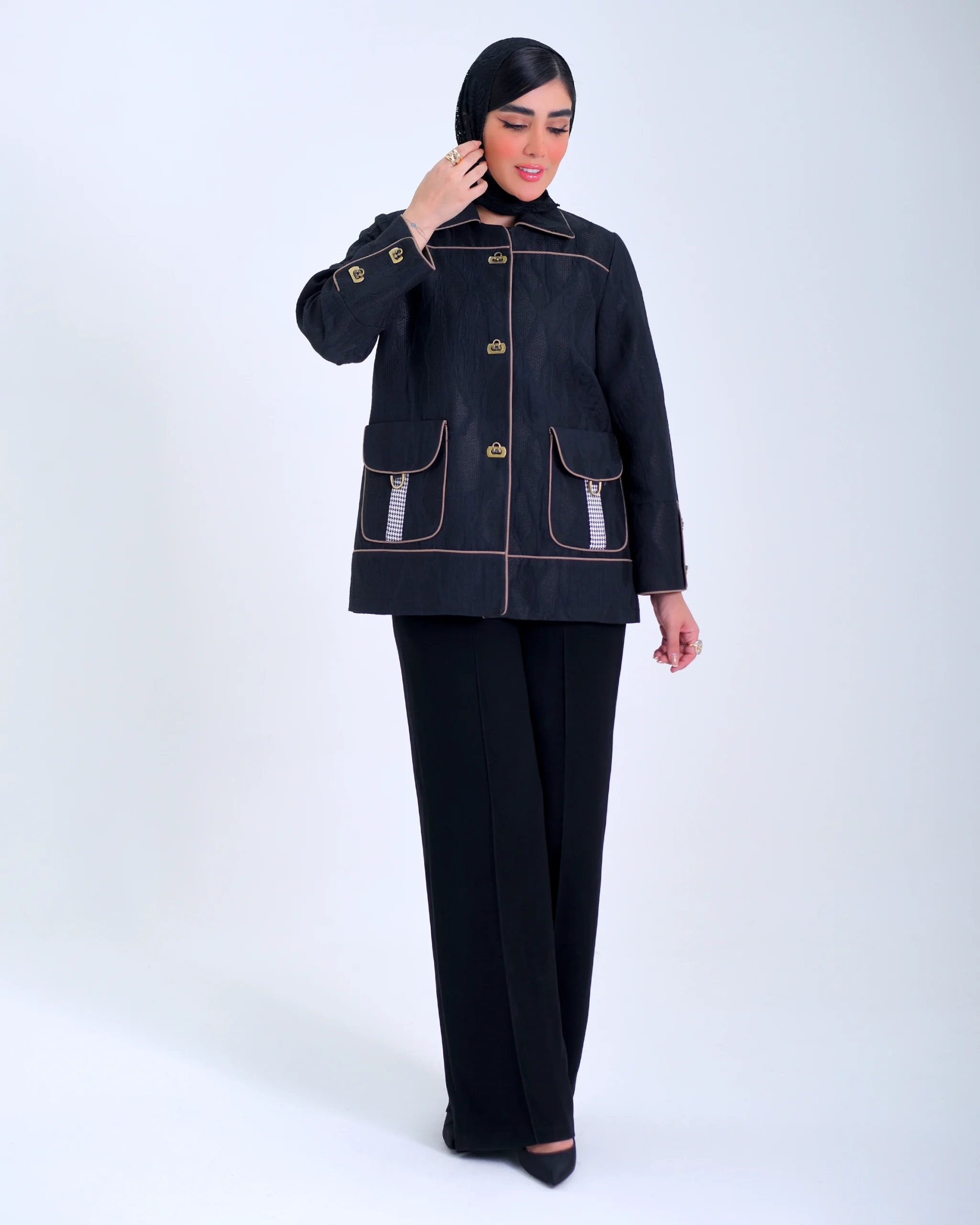 کت ژاکارد موجی صورتی با گلدوزی تسمه