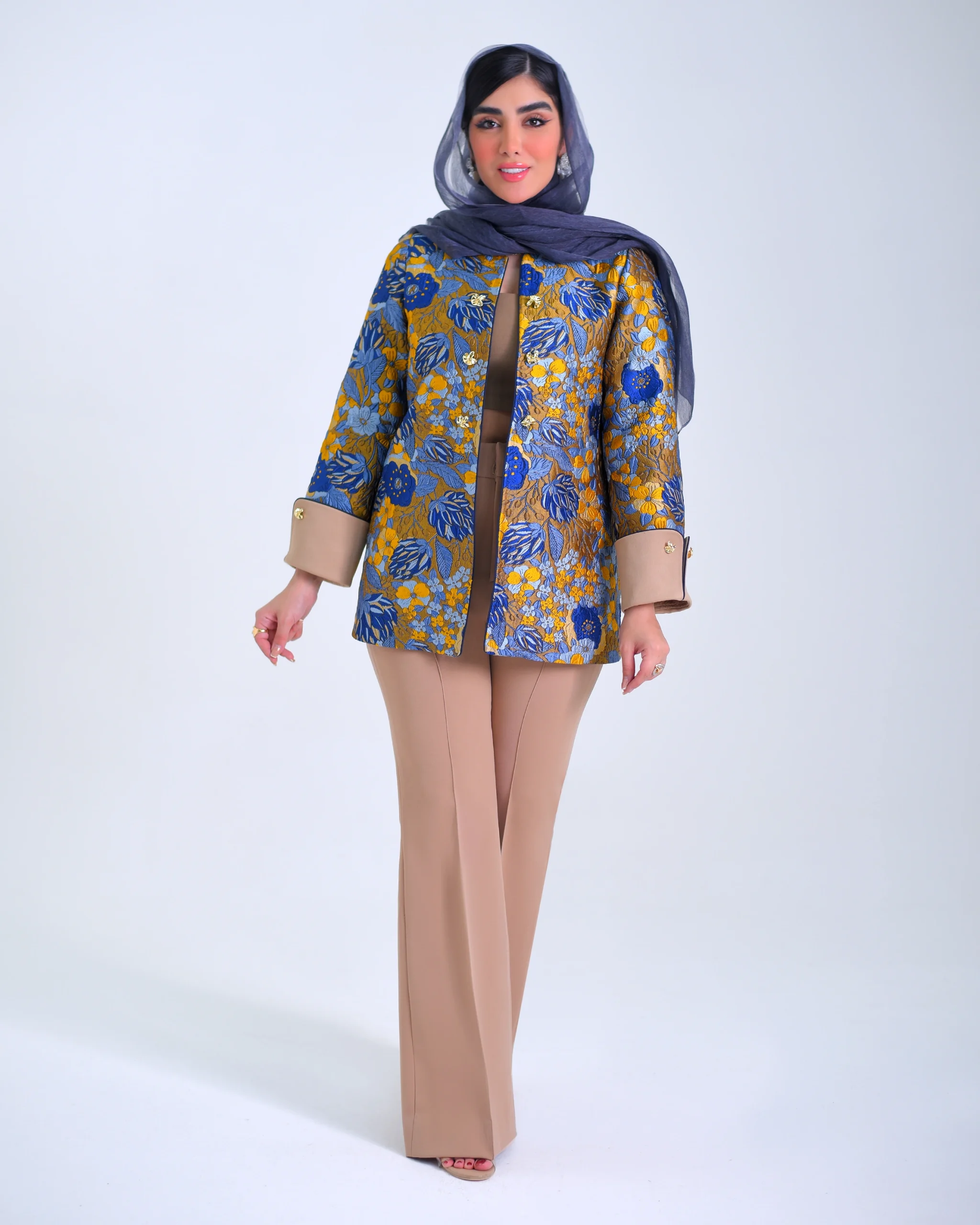 کت ژاکارد ترک طرح گل آبی