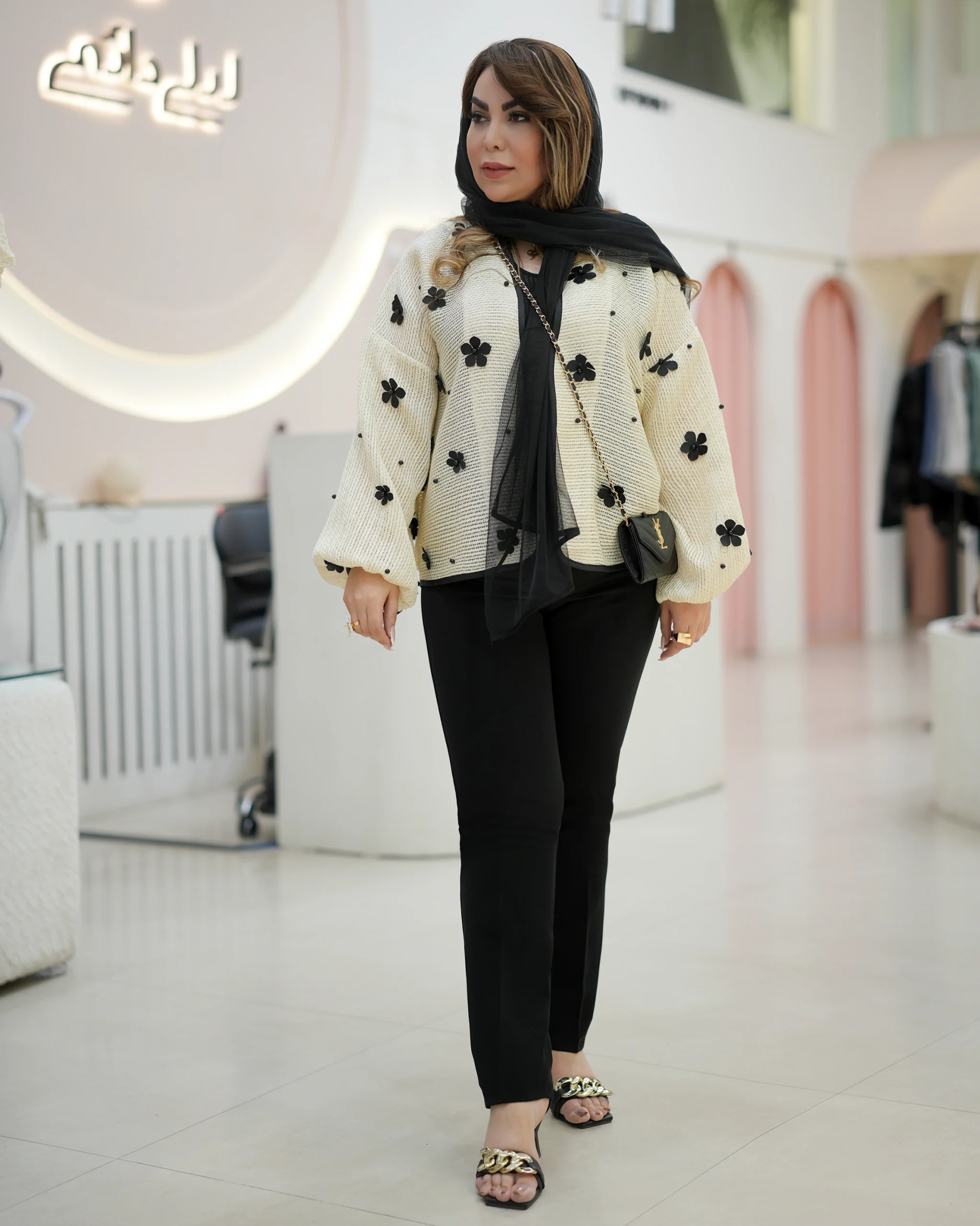 کت کرم گل مشکی , مناسب استایل روزمره و دورهمی های شما. جنس بافت نرم و سبک این مدل نهایت ظرافت زنانه را برای شما فراهم میکند.